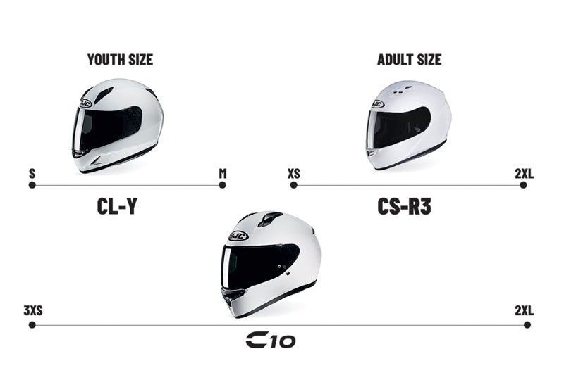 C10은 기존 CL-Y와 CS-R3 헬멧을 모두 대체하여 3XS에서 2XL까지 완벽한 착용감을 제공하고 아동부터 성인용 크기까지 커버합니다.